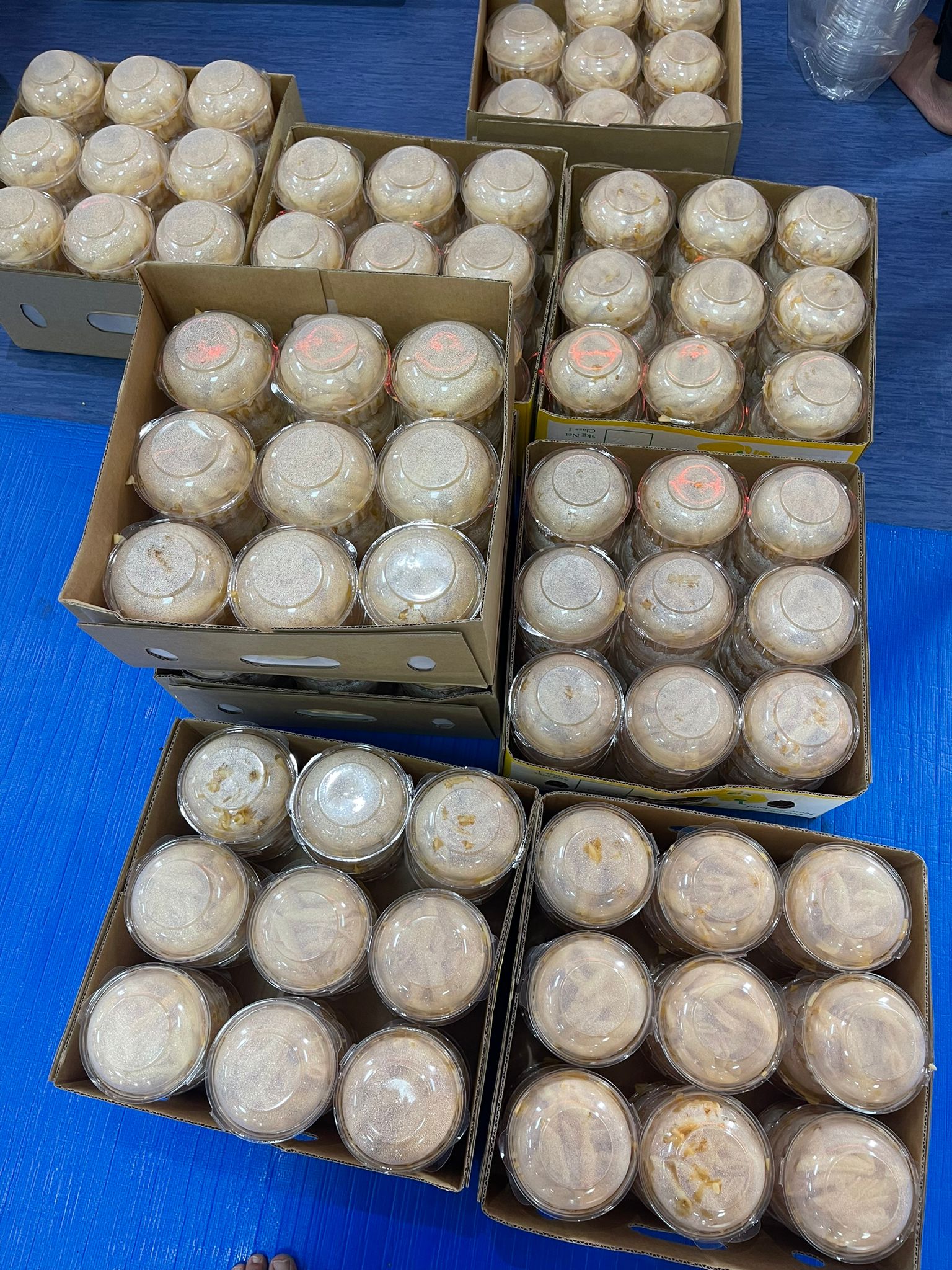 Lunchboxes getting ready to be delivered for flood victims